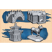 Four unpainted Monument miniatures.