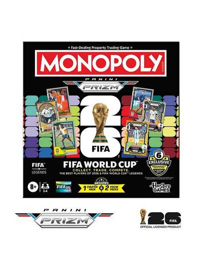 HasbroCOLLECT, TRADE, COMPETE: go for FIFA World Cup 2026 glory in this Monopoly Panini Prizm: FIFA World Cup board game! Includes Monopoly Panini Prizm ...